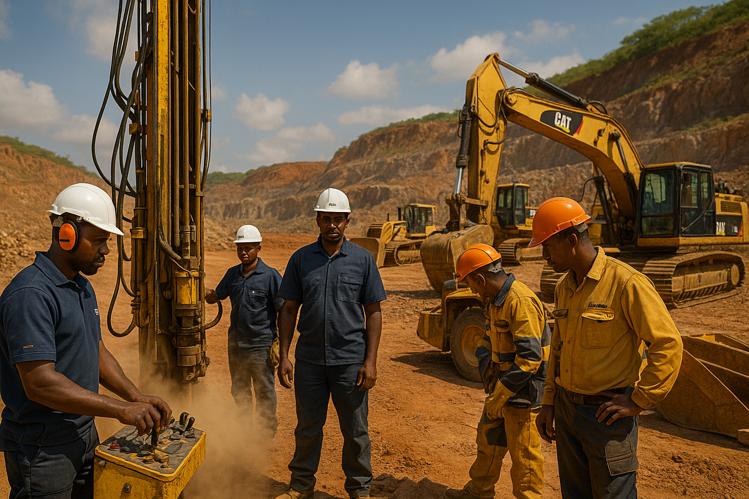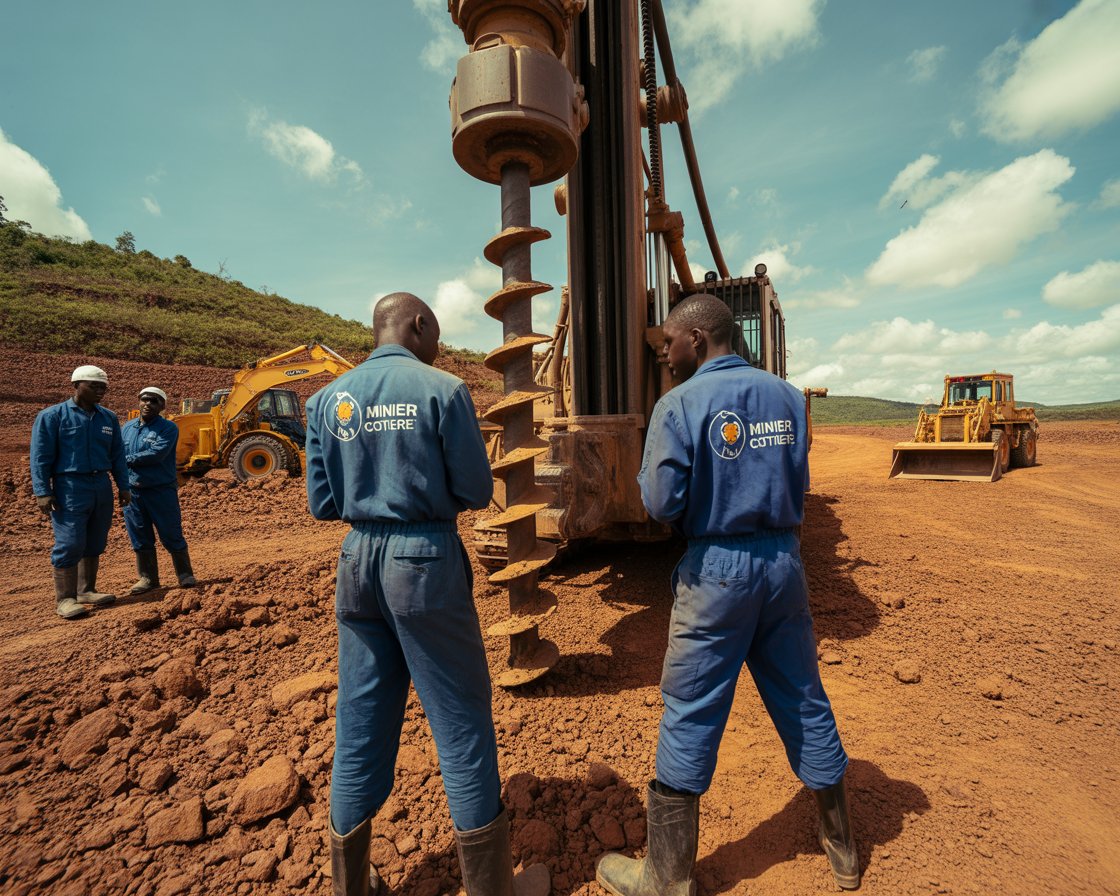 Services miniers spécialisés : Forage, engins lourds, support technique, coordination.